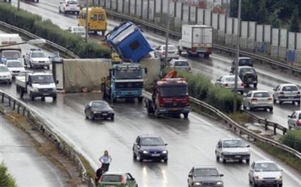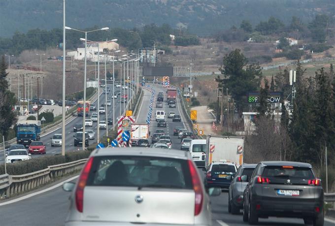 Στο σημείο η κυκλοφορία των οχημάτων διεξάγεται μόνο από τη μεσαία λωρίδα, ενώ έχει δημιουργηθεί μεγάλο μποτιλιάρισμα.