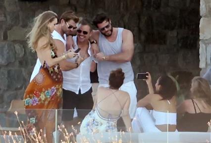 Το ευτυχισμένο ζευγάρι, το οποίο είναι παντρεμένο από το 2005, έδειχνε ευδιάθετο, καθώς απολάμβαναν ένα χορό μαζί στη πανέμορφη βίλα όπου διαμένουν ενώ στη συνέχεια έβγαλαν μία σειρά από φωτογραφίες με τους αδελφούς Χέμσγουορθ να τους παρακολουθούν
