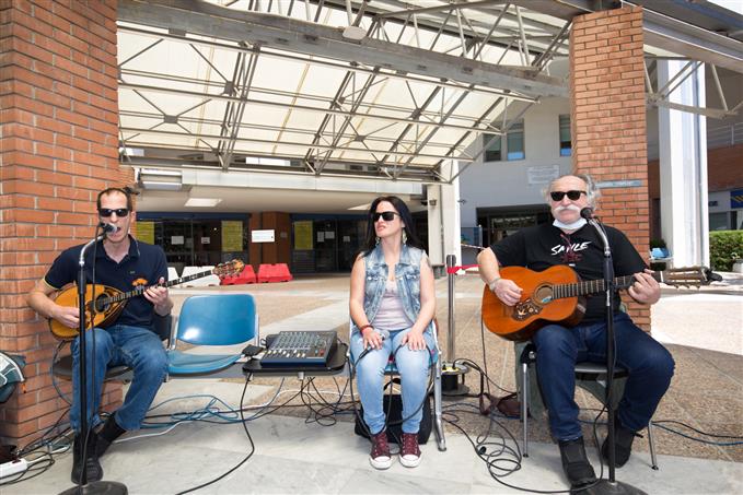 Στην κεντρική είσοδο του νοσοκομείου ο Αγάθωνας και η κομπανία έπαιξαν και τραγούδησαν ρεμπέτικα