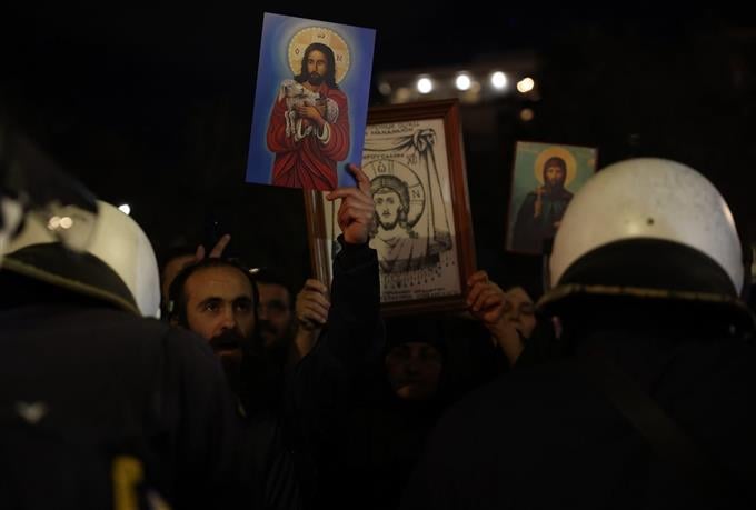 Άνθρωποι με σταυρούς και εικόνες ζήτησαν να μην πραγματοποιηθεί η παράσταση