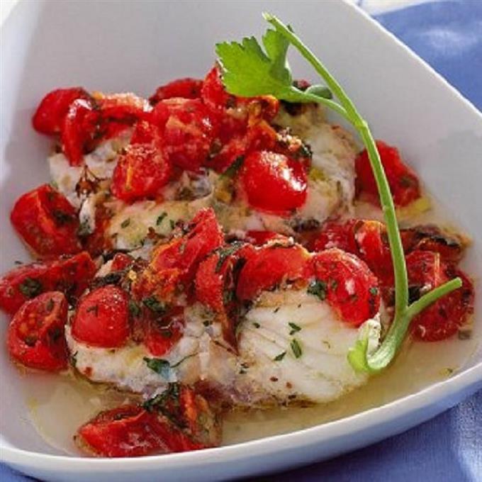 Αν αναζητάτε πιάτο light και υγιεινό μα ζουμερό και γεμάτο νοστιμιά, δοκιμάστε να φτιάξετε το ψάρι με σάλτσα από σκορδάτα ντοματίνια
