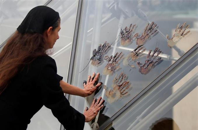 Γαλλία: Ακτιβιστές πασάλειψαν με μελάσα την Πυραμίδα του Λούβρου (pics)