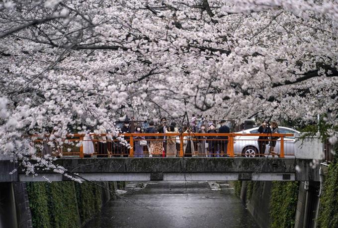 Με τις θερμοκρασίες να ξεπερνούν τους 19 βαθμούς Κελσίου στο Τόκιο, οι πολίτες απολαμβάνουν τους ολάνθιστους δρόμους