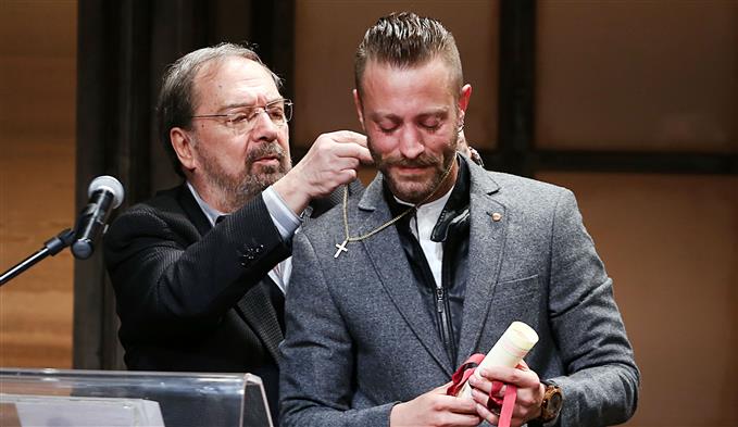 Παρέλαβε το χρυσό σταυρό του αείμνηστου ηθοποιού από τον προηγούμενο νικητή, Φώτη Στρατηγό