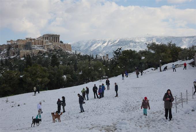 Τα χιόνια στο κέντρο της Αθήνας έδωσαν ανάσα παιχνιδιού στα παιδιά