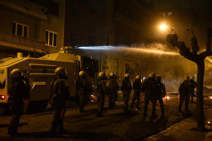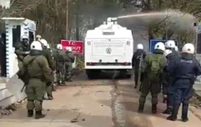 Ο «Αίαντας» έκανε ρίψεις νερού κρατώντας σε απόσταση τους πρόσφυγες και τους μετανάστες από τα σύνορα