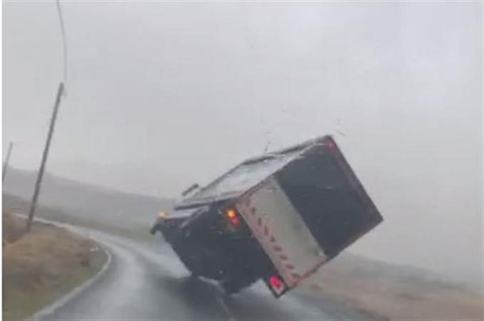 Η καταιγίδα «Χόρχε» σηκώνει φορτηγό στον αέρα και το ανατρέπει