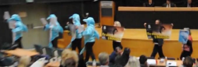 Στο βίντεο που ακολουθεί μπορείτε να δείτε τους ακτιβιστές να εμφανίζονται ως δελφίνια σε συζήτηση στο Περιφερειακό Συμβούλιο