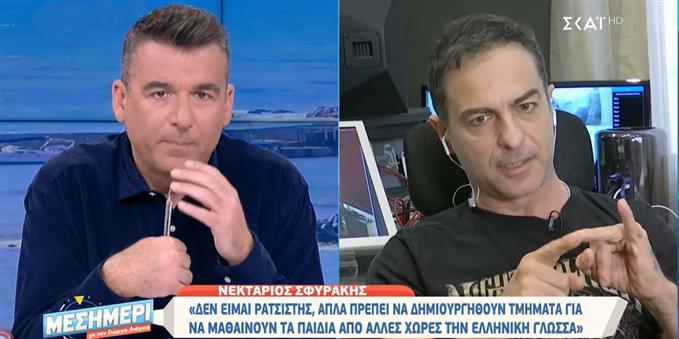 Νεκτάριος Σφυράκης: Σάλος με τις δηλώσεις για τους αλλοδαπούς στα σχολεία - Δεν είμαι ρατσιστήςΟ Νεκτάριος Σφυράκης επανήλθε μετά τις δηλώσεις του στο «Ευτυχείτε» ότι πηγαίνει τα παιδιά του σε ιδιωτικό σχολείο γιατί οι αλλοδαποί στο δημόσιο της περιοχής στην οποία ζει, «τραβάνε πίσω» τη μόρφωση των παιδιών