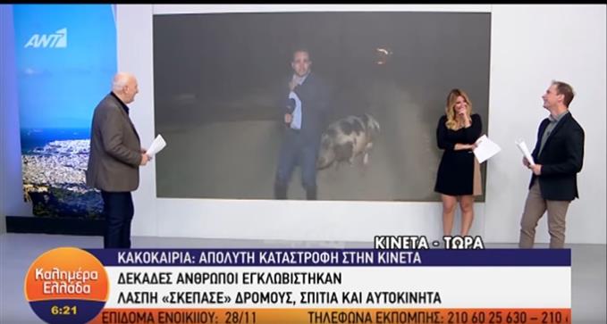 Τα μέλη του πάνελ της εκπομπής συνδέθηκαν με την περιοχή και αντίκρισαν τον δημοσιογράφο να τρέχει, καθώς τον κυνηγούσε ένα γουρούνι