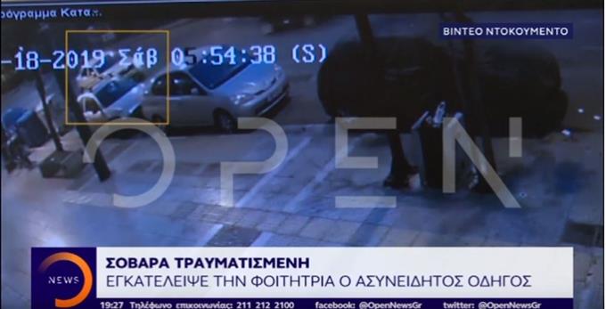 To OPEN TV έφερε στη δημοσιότητα το βίντεο που δείχνει το μαύρο διερχόμενο ΙΧ να χτυπά και να εγκεταλείπει τη φοιτήτρια στη Λεωφόρο Θησέως