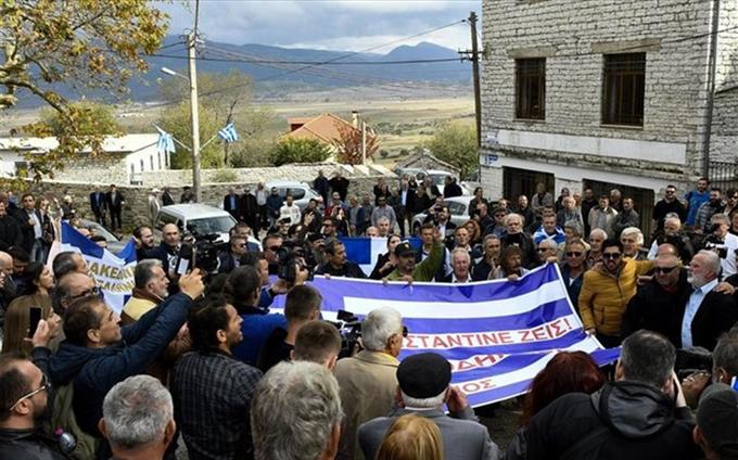 Άνδρες της αλβανικής αστυνομίας άρπαξαν πανό που προσπάθησαν να ανοίξουν οι γονείς του Κατσίφα, αποτίοντας φόρο τιμής στη μνήμη του γιου τους