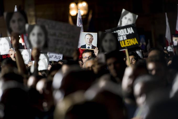 Λϊγες ώρες νωρίτερα, το κόμμα του τον στήριξε - Έξω από το γραφείο του Τζόζεφ Μουσκάτ βρίσκονται πολίτες που κρατούν πλακάτ και φωτογραφίες της δημοσιογράφου Ντάφνι Καρουάνα Γκαλίζια