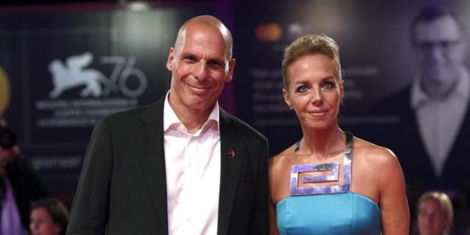 Τόσο ο Γιάνης Βαρουφάκης όσο και η Δανάη Στράτου έλαμπαν και χαμογελούσαν στους φωτογράφους