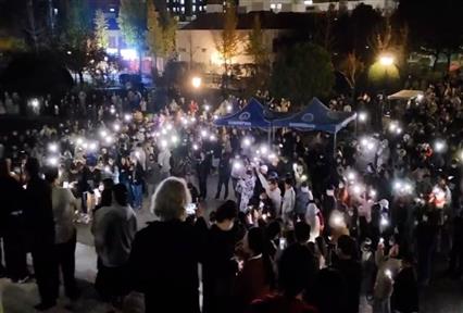 Το κέντρο ασφυκτικά γεμάτο, με τους διαδηλωτές να φωνάζουν συνθήματα, όπως «Νίκη στην Ιντιφάντα», «Δεν υπάρχει ειρήνη χωρίς δικαιοσύνη, αλληλεγγύη στην Παλαιστίνη», «Η ιστορία έχει μια σωστή πλευρά, με την Παλαιστίνη ως τη λευτεριά»