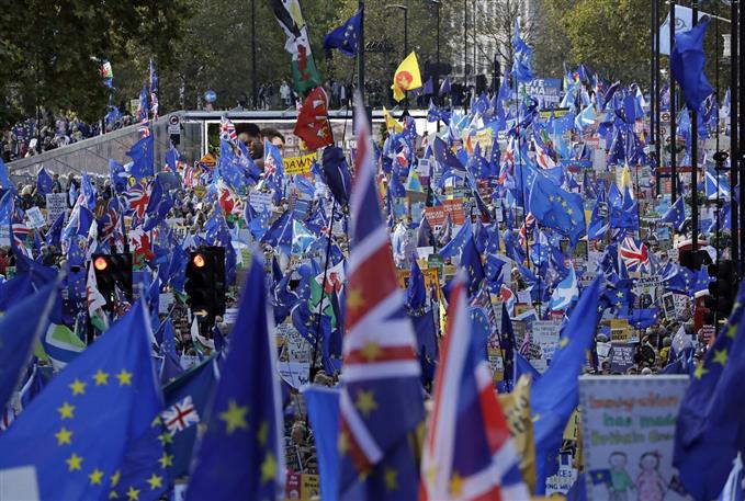 Πολύς κόσμος έξω από το βρετανικό Κοινοβούλιο, όπου συζητείται η συμφωνία του Τζόνσον με την ΕΕ για το Brexit. Οι διαδηλώσεις και οι εικόνες τους