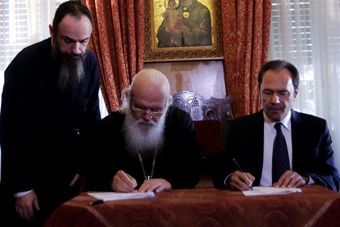 Η ανανέωση του συμφώνου υπεγράφη στην Αρχιεπισκοπή από τον προκαθήμενο της Ελλαδικής Εκκλησίας και τον πρόεδρο της ΠΕΦ, Θεόδωρο Τρύφων, ενώ παρόντες ήταν ο υπουργός Υγείας, Βασίλης Κικίλιας