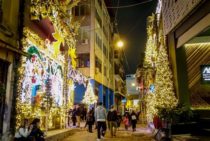 Το σκηνικό είναι φέτος πιο παραμυθένιο από ποτέ, καθώς τα 3.000 βιοδιασπώμενα φαναράκια «πετούν» έχοντας ως φόντο τη φωτισμένη Χριστουγεννιάτικη Αγορά