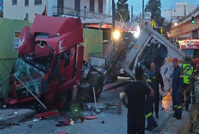 Σκηνές-σοκ στο σημείο τη στιγμή που εκτρέπεται της πορείας του το φορτηγό