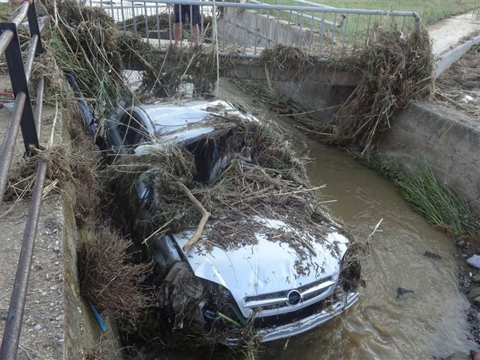 Αγώνας δρόμου των κατοίκων να ανοίξουν τα δύο μεγάλα ρέματα που έχουν φράξει από πεσμένες γέφυρες, αυτοκίνητα και μπάζα