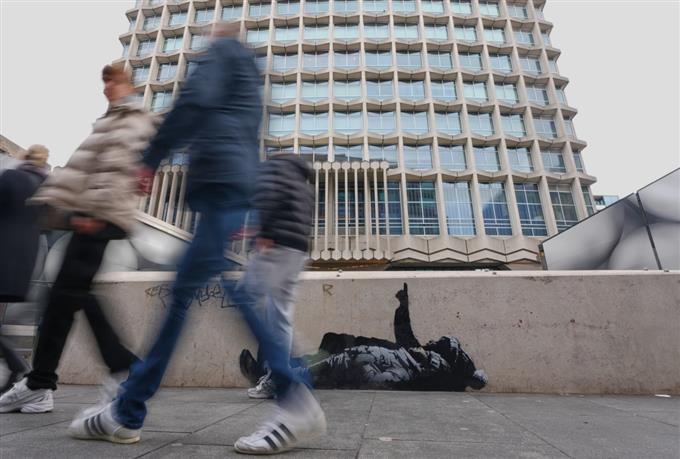 Τα δύο πανομοιότυπα γκραφίτι σε δύο συμβολικά σημεία της βρετανικής πρωτεύουσας