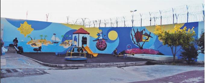 Η οµάδα τέχνης του δρόµου Political Stencil έδωσε χρώµα στον µουντό παιδότοπο των γυναικείων φυλακών