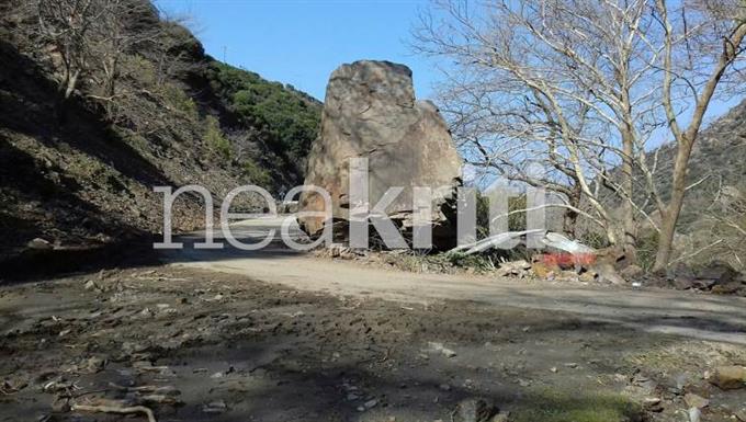 Σφηνάρι Κρήτης: Τεράστιος βράχος αποκολλήθηκε από το βουνό