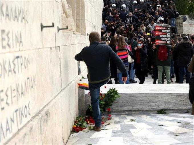 Διαδηλωτής κλωτσάει το στεφάνι της Μέρκελ στον Άγνωστο Στρατιώτη