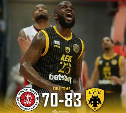 Επίδειξη δύναμης μέσα στην Ιερουσαλήμ από την ΑΕΚ η οποία κέρδισε (83-70) μέσα στην Iερουσαλήμ τη Χαποέλ. Αντίστοιχα, ο Προμηθέας έχασε από την Οστάνδη με 88-84
