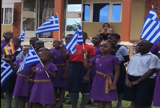 Παιδιά στην Ουγκάντα γιόρτασαν την επέτειο του «Όχι» ανεμίζοντας ελληνικές σημαίες και τραγουδώντας τον εθνικό ύμνο