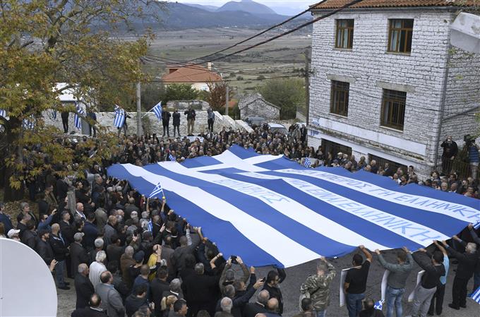 Για 20 λεπτά έκλεισαν τον κεντρικό δρόμο Κακαβιάς-Αργυροκάστρου οι Έλληνες που έκαναν πορεία μετά την κηδεία - Αποστολή: Ρωμανός Κοντογιαννίδης