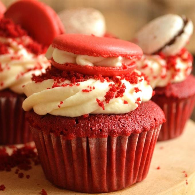 Βρείτε τη συνταγή για ατομικά κέικ τύπου red velvet με υπέροχη επικάλυψη φρέσκου τυριού