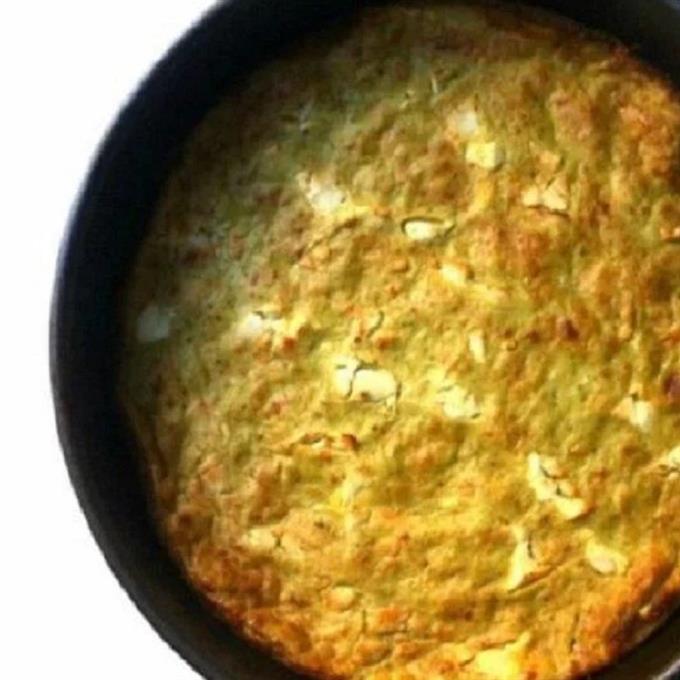 Συνταγή για πεντανόστιμη ομελέτα φούρνου με κολοκυθάκια, φρέσκα κρεμμυδάκια και τυριά.