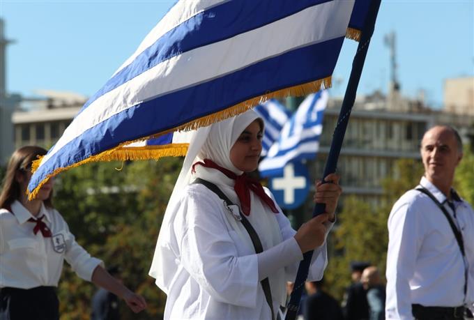 Πλήθος κόσμου συγκεντρώθηκε στους δρόμους του κέντρου της Αθήνας, για να παρακολουθήσει τη μαθητική παρέλαση για την επέτειο της 28ης Οκτωβρίου