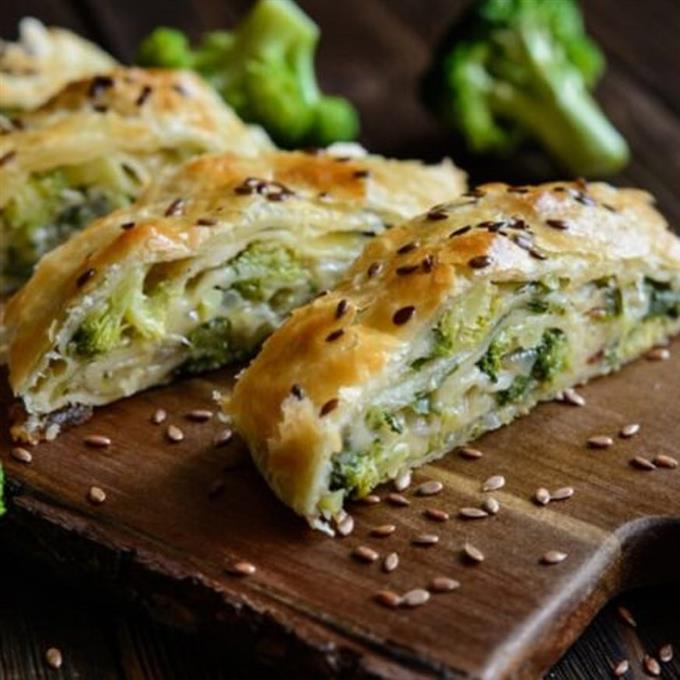 Εύκολο και νόστιμο ρολό με μπρόκολο, φέτα, ανθότυρο και μπλε τυρί.