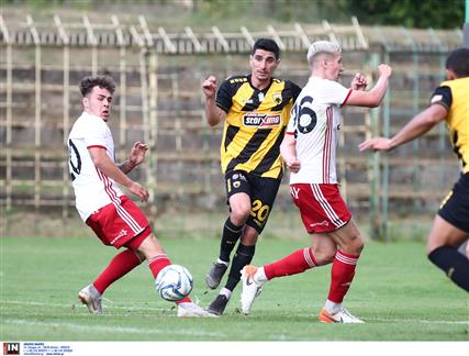 Η συμβολική κίνηση του Κώστα Γαλανόπουλου και το «Μ» του Πέτρου Μάνταλου μπροστά σε μια εξέδρα που έκανε έρανο για τους συλληφθέντες Κροάτες οπαδούς