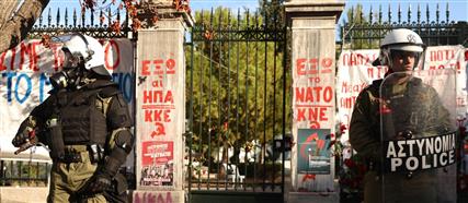 Η ένταση προκλήθηκε λίγο πριν τη λήξη της πορείας και όταν τα ΜΑΤ έκοψαν την πορεία προς το μνημείο