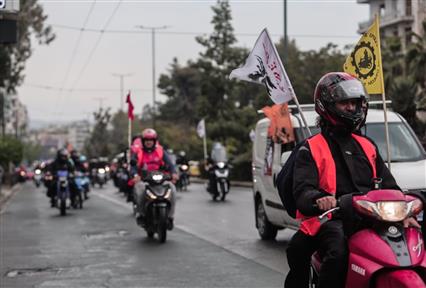Δυναμική μηχανοκίνητη πορεία πραγματοποίησαν οι διανομείς της εταιρείας «Wolt»