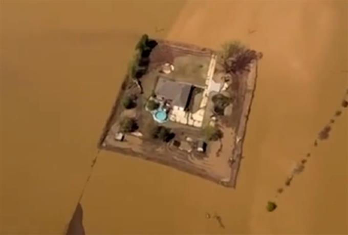 Κατασκευάζοντας ένα δικό της ανάχωμα γύρω από την ιδιοκτησία της, η οικογένεια κατάφερε να σώσει το σπίτι της από τις καταστροφικές πλημμύρες «βιβλικών» διαστάσεων