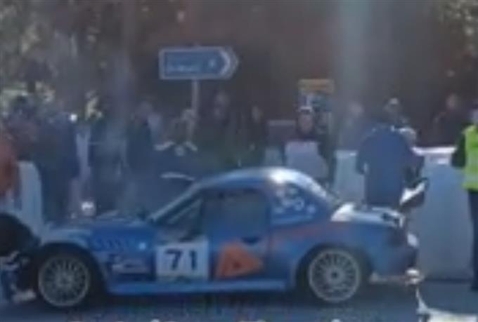 Σε ένα βίντεο που ανάρτησε ο ίδιος είναι εμφανής η στιγμή που το αυτοκίνητο χτυπά το ανάχωμα του αγωνιστικού δρόμου προτού πέσει στον γκρεμό