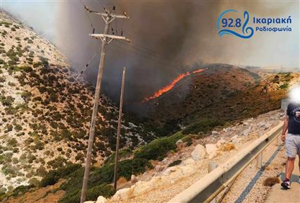 Συνεχίζει να καίει, από τις 14:00 του Σαββάτου (17/8), η φωτιά που ξέσπασε στο Καμάρι του δήμου Φούρνων Κορσεών