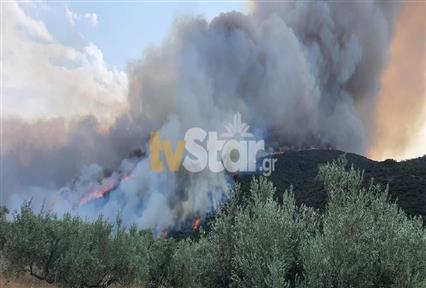 Η φωτιά βοηθούμενη από τους ισχυρούς ανέμους απέκτησε δύο μεγάλα μέτωπα που κινούνταν απειλητικά ακόμη και προς το χωριό