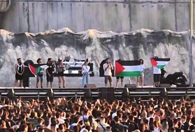 Ο ΛΕΞ ανέβασε στην σκηνή του ΟΑΚΑ το March to Gaza και σημαίες της Παλαιστίνης
