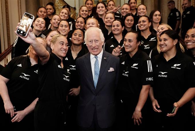 Υποδέχθηκε τη γυναικεία ομάδα ράγκμπι της Νέας Ζηλανδίας στο Παλάτι του Μπάκιγχαμ με τη γαλανόλευκη γραβάτα