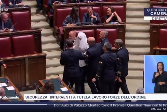 Ο βουλευτής Ρικάρντο Μάτζι ντύθηκε φάντασμα και διαμαρτυρήθηκε για ένα δημοψήφισμα για την εργασία και για την υπηκοότητα των αλλοδαπών