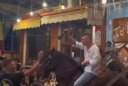 Ο νεαρός που το καβαλάει το χτυπά με τα πόδια του στα πλευρά και του τραβά τη χαίτη, ώστε να κάνει κυκλικές φιγούρες