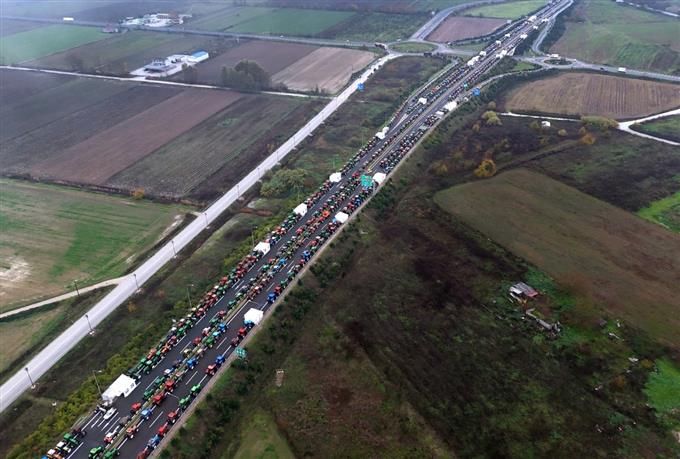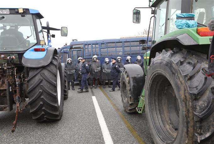 Οι αγρότες πέρασαν πεζοί στον κόμβο του αυτοκινητοδρόμου και έκοψαν και τα δύο ρεύματα κυκλοφορίας
