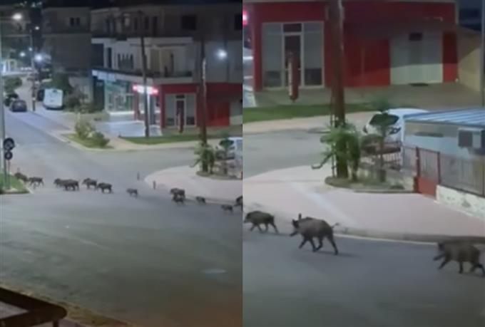 Κάτοικος της περιοχής τράβηξε βίντεο με πάνω από 15 αγριογούρουνα να ψάχνουν για τροφή