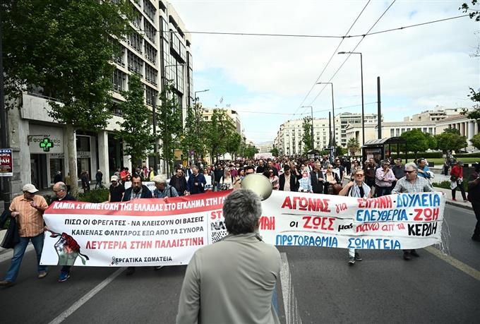 Πλήθος κόσμου βρέθηκε στο λιμάνι του Πειραία με κύριο σύνθημα την άμεση κατάπαυση του πυρός στη Γάζα και την καταδίκη της ισραηλινής στρατιωτικής δράσης