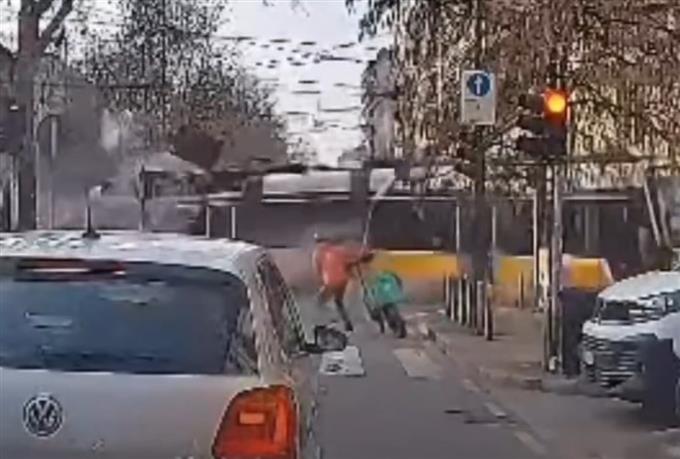Το τραμ πέφτει σε έναν τοίχο, μπροστά στα έντρομα μάτια ποδηλάτη που τελευταία στιγμή γλίτωσε